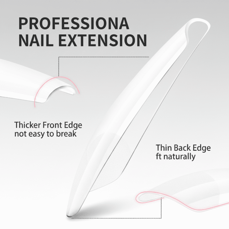 Premium transparent soft GelY tips — 550 PCS and 11 sizes of full-cover for salon-quality extensions.