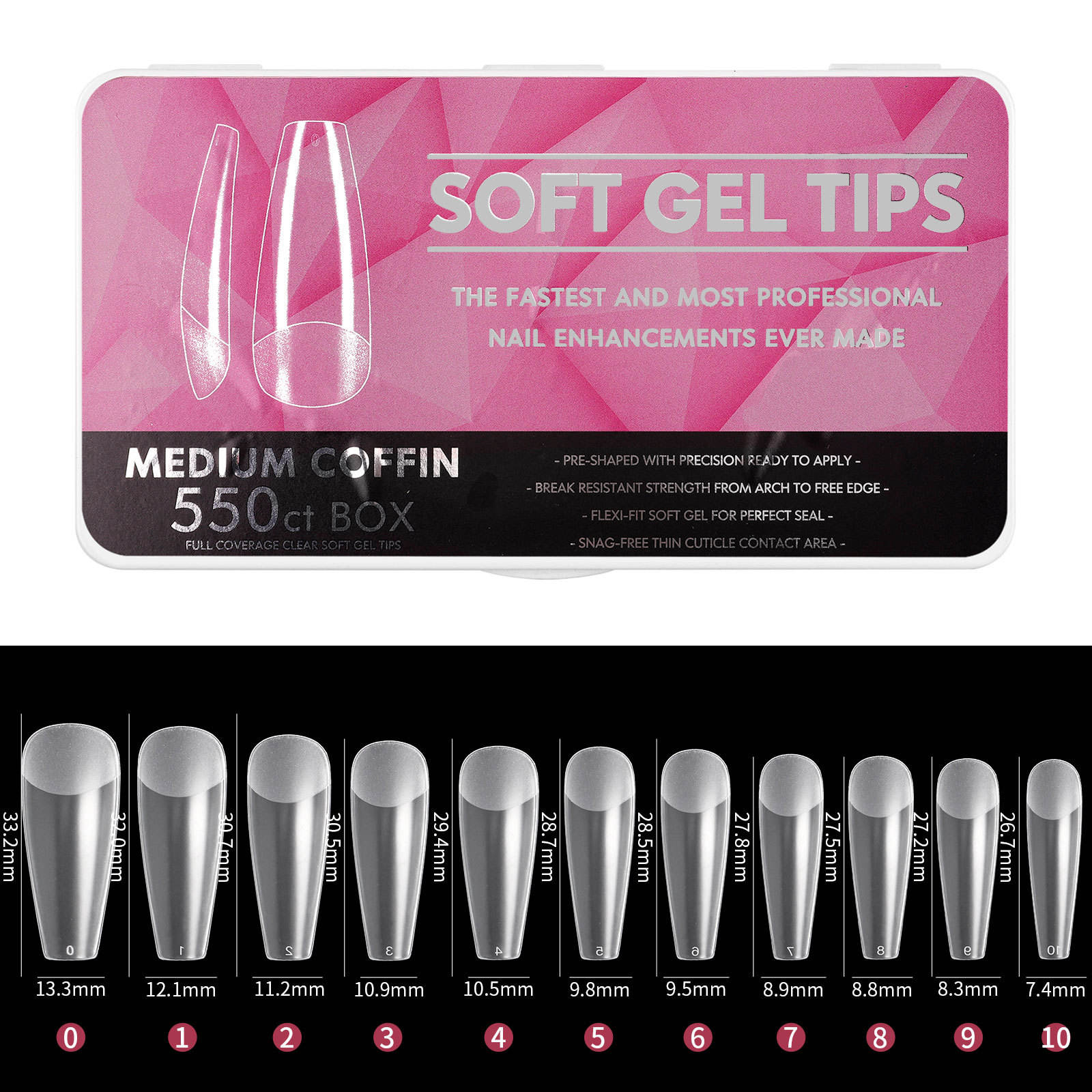 | 550 piece full-set — enough for multiple uses or full salon clients | Soft gel material for flexible wear and comfortable fit |