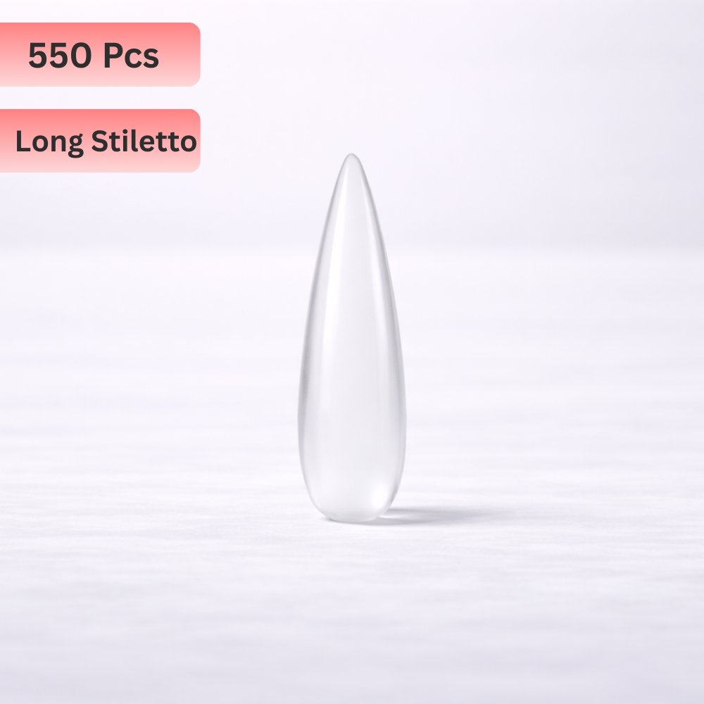 Premium transparent soft gel tips — 550PCS and 11 sizes of full-cover for salon-quality extensions.